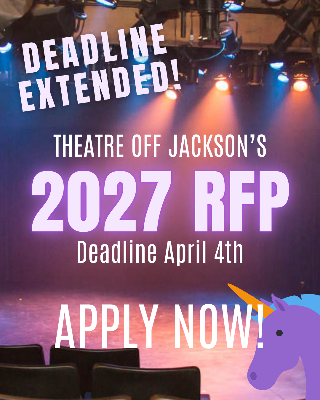 Have a show bursting out of you that can’t wait until 2027? We have several summer slots available through our general rental program for both the Downstairs Theater and Upstairs Main Hall, which could include a full buyout of both floors. Perfect for conferences, retreats, festivals, and summer camps. Contact us at info@theatreoffjackson.org if you are interested in these summer slots or one-off dates throughout the year.