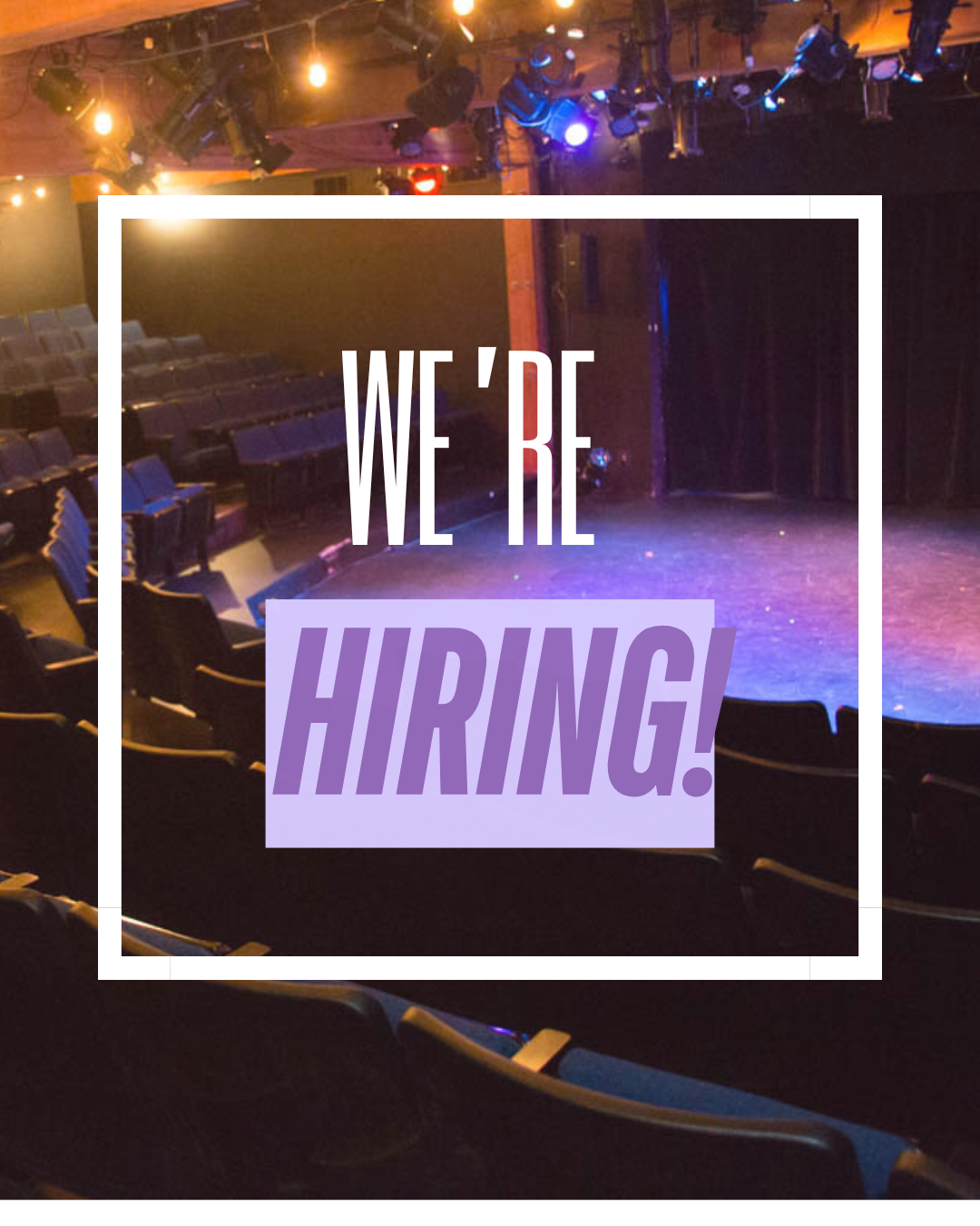 Work With Us Want to produce at TOJ? See Co-Produce page. . Job Opportunities at Theatre Off Jackson: . Please check back for future employment opportunities